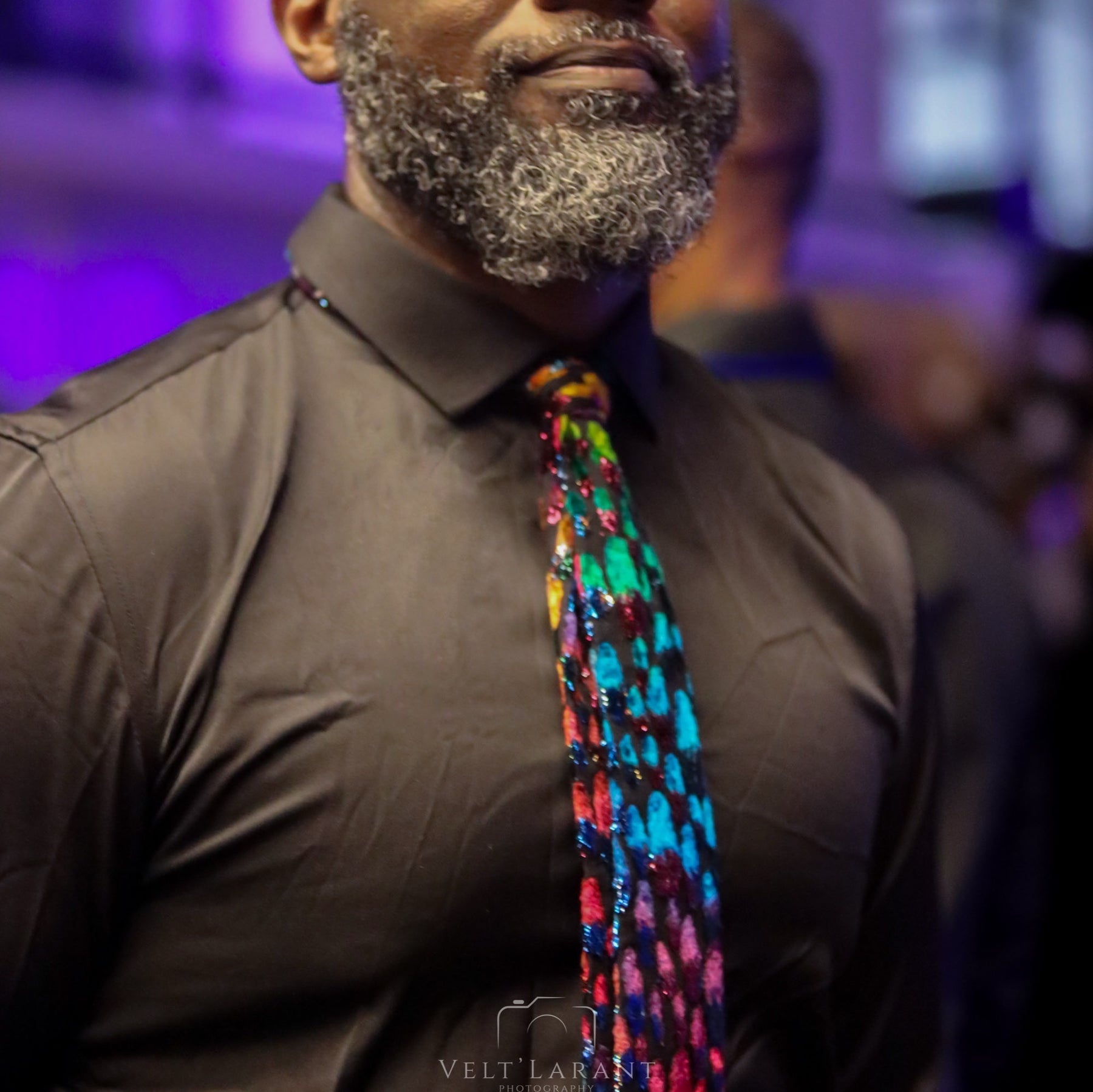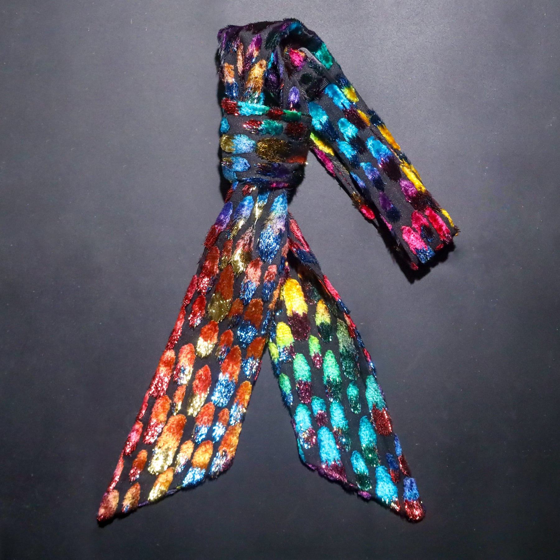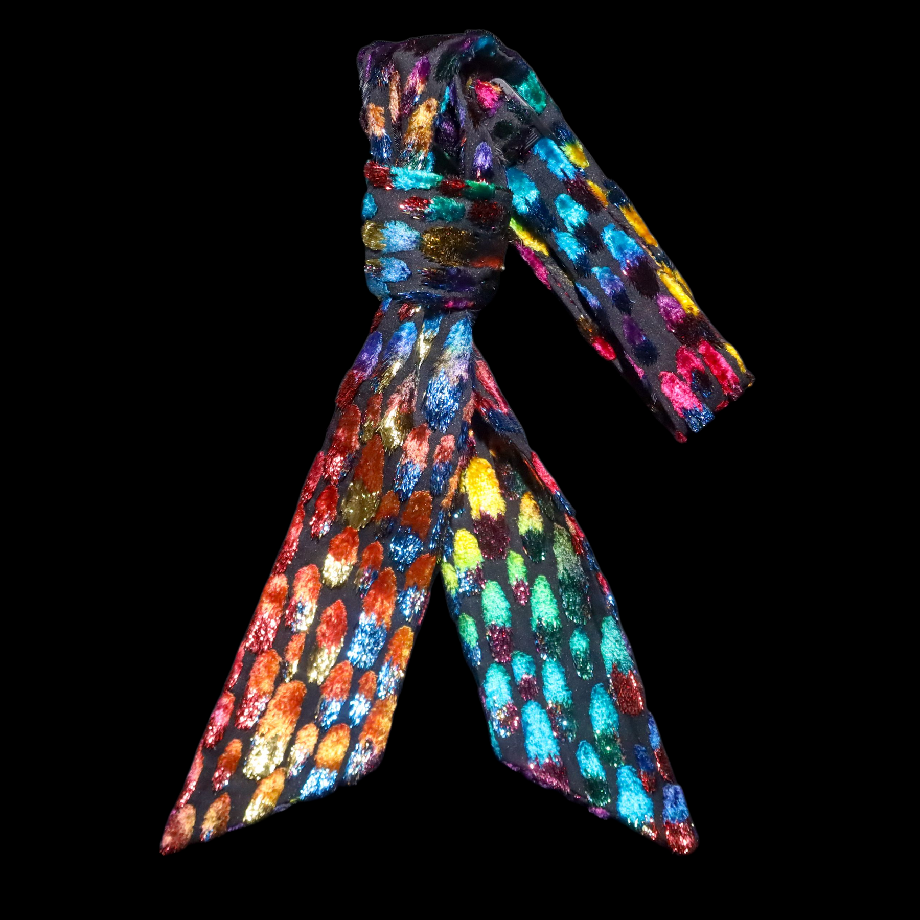 An exclusive atelier piece crafted from imported Italian silk-velvet blend fabric featuring a jacquard iridescent pattern. Each tie is unique in tone and arrangement, making no two pieces identical. Designed for advanced collectors of texture, color, and form.