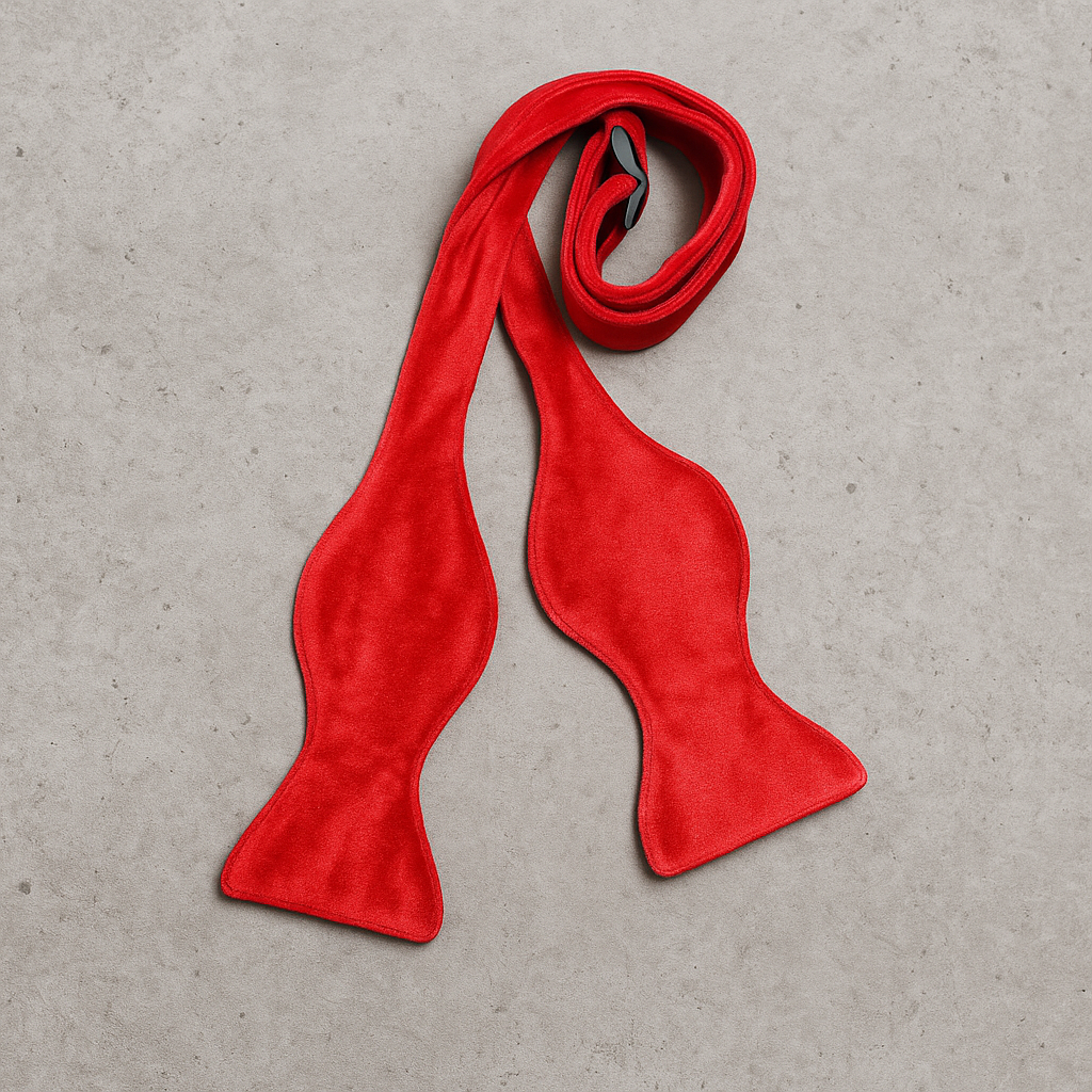 Defined by confidence and clarity, the red velvet bowtie reinterprets traditional eveningwear through a bold, contemporary lens. The texture delivers depth, while the color evokes warmth and ceremony, ideal for festive or statement dressing.