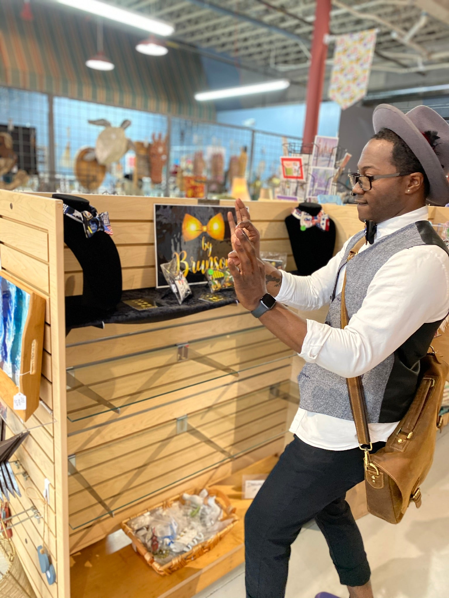 The Emerald Outlaw Bowtie embodies the spirit of the modern maverick, refined, fearless, and untamed. Crafted from a hand-beaded sequin textile shimmering in emerald green, gold, and obsidian, this limited-edition piece commands attention with its raw elegance.
