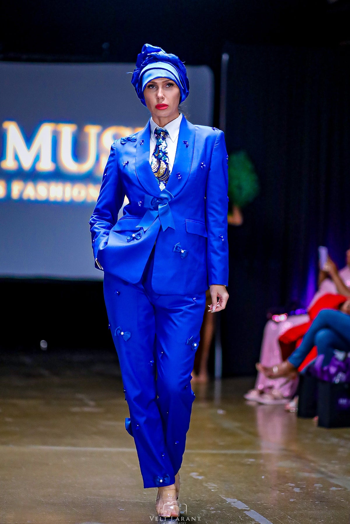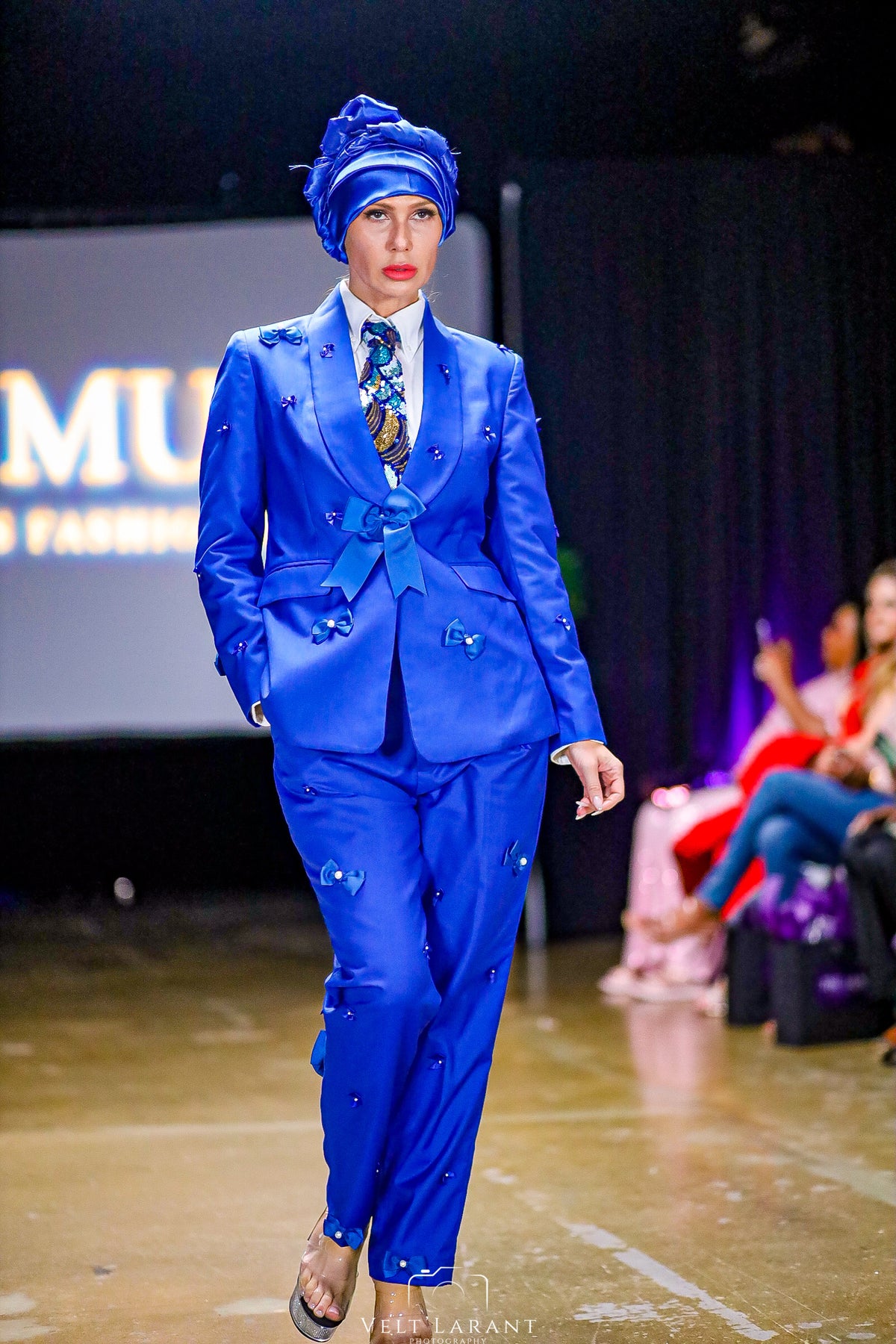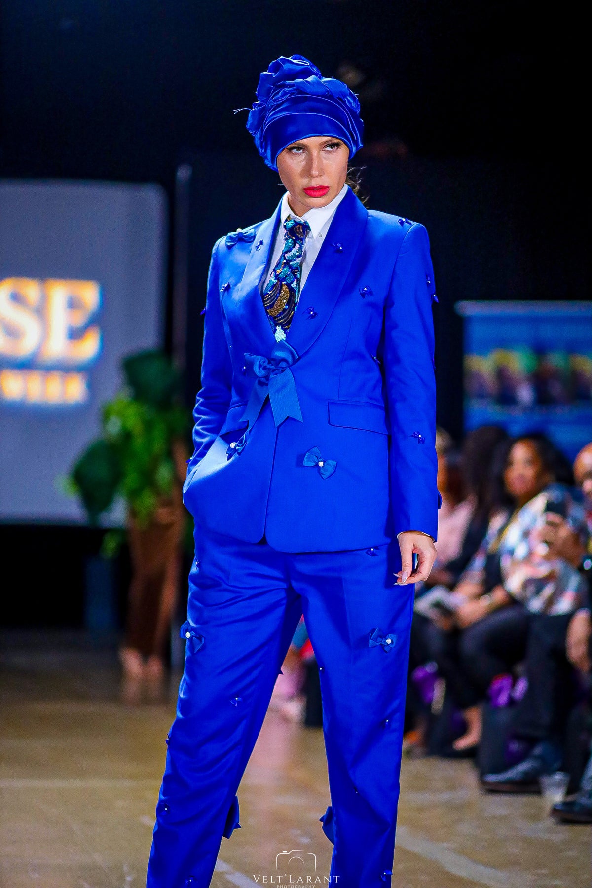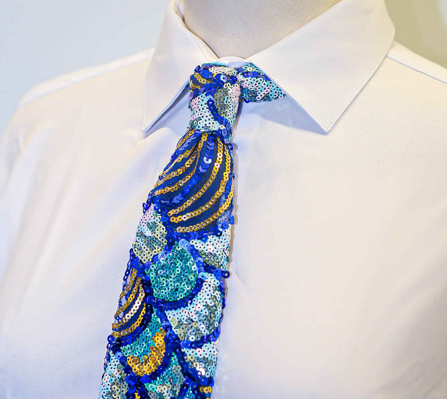 The Imperial Sequin V-Tie introduces the first release of the Velt’Larant Luxury Line , a collection reserved for pieces that redefine what handmade elegance can look like. Each tie is constructed from a rare, hand-beaded sequin textile interlaced with shades of royal blue, gold, and silver, delivering a three-dimensional brilliance that shifts with every step and flash of light.